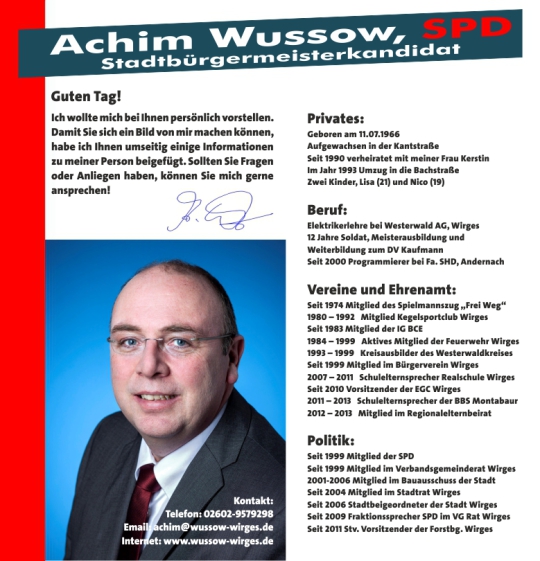 Mit Gabi Weber, MdB führe ich die Liste der SPD Wirges an.